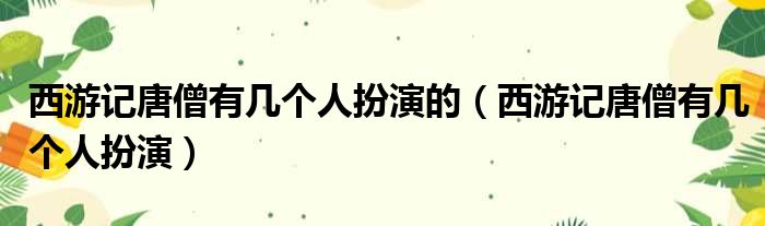 导读 大家好,小活来为大家解答以上的问题。西游记唐僧有几个人扮演的,西游记唐僧有几个人扮演这个很多人还不知道,现在让我们一起来看看吧!1、