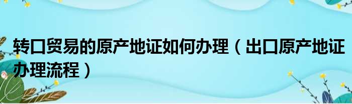 转口贸易的原产地证如何办理(出口原产地证办理流程)