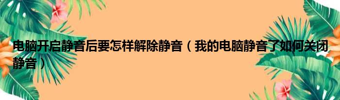 导读 大家好,小活来为大家解答以上的问题。电脑开启静音后要怎样解除静音,我的电脑静音了如何关闭静音这个很多人还不知道,现在让我们一起来看看