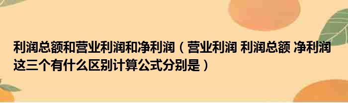 利润总额和营业利润和净利润(营业利润 利润总额 净利润 这三个有什么区别计算公式分别是)