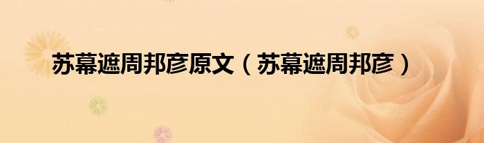 苏幕遮周邦彦原文(苏幕遮周邦彦)