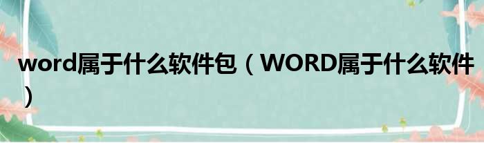 大家好,小活来为大家解答以上的问题。word属于什么软件包,WORD属于什么软件这个很多人还不知道,现在让我们一起来看看吧!