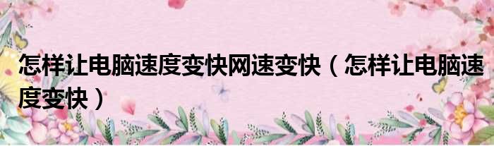 怎样让电脑速度变快网速变快(怎样让电脑速度变快)
