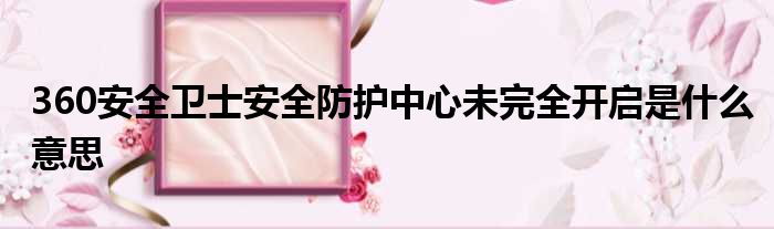 导读 大家好,小活来为大家解答以上的问题。360安全卫士安全防护中心未完全开启是什么意思这个很多人还不知道,现在让我们一起来看看吧!1、你好朋