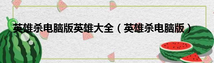 英雄杀电脑版英雄大全(英雄杀电脑版)