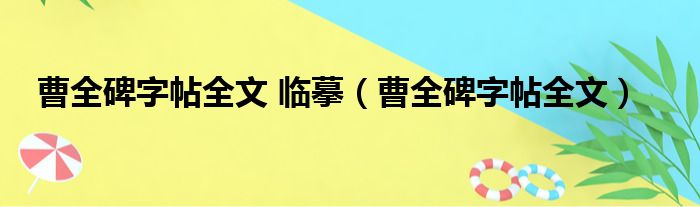 曹全碑字帖全文 临摹(曹全碑字帖全文)
