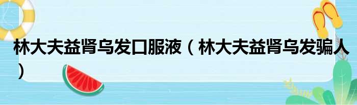 林大夫益肾乌发口服液(林大夫益肾乌发骗人)