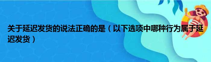 导读 大家好,小活来为大家解答以上的问题。关于延迟发货的说法正确的是,以下选项中哪种行为属于延迟发货这个很多人还不知道,现在让我们一起来看