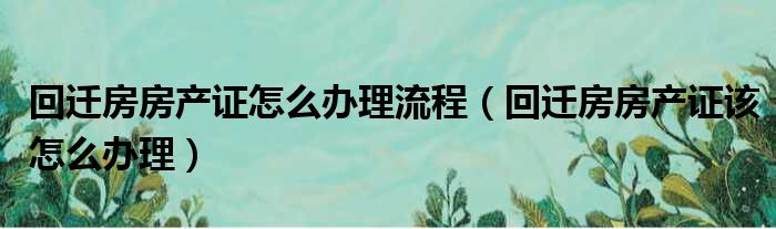 回迁房房产证怎么办理流程(回迁房房产证该怎么办理)