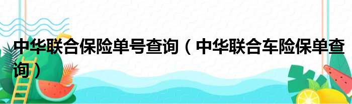 大家好,小活来为大家解答以上的问题。中华联合保险单号查询,中华联合车险保单查询这个很多人还不知道,现在让我们一起来看看吧!