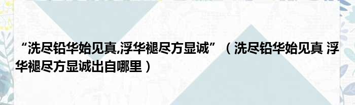 “洗尽铅华始见真,浮华褪尽方显诚”(洗尽铅华始见真 浮华褪尽方显诚出自哪里)