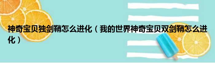 神奇宝贝独剑鞘怎么进化(我的世界神奇宝贝双剑鞘怎么进化)