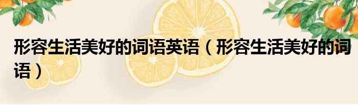导读 大家好,小活来为大家解答以上的问题。形容生活美好的词语英语,形容生活美好的词语这个很多人还不知道,现在让我们一起来看看吧!1、: 形容
