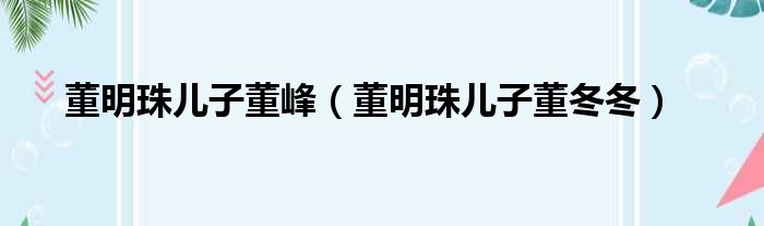 董明珠儿子董峰(董明珠儿子董冬冬)