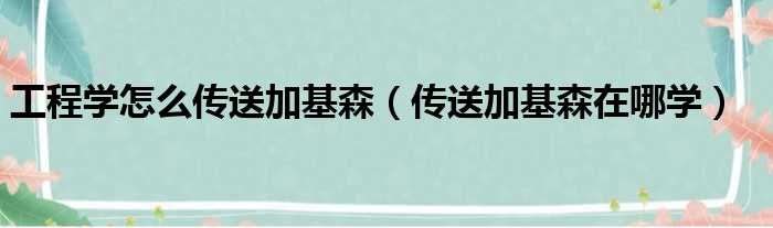 大家好,小活来为大家解答以上的问题。工程学怎么传送加基森,传送加基森在哪学这个很多人还不知道,现在让我们一起来看看吧!