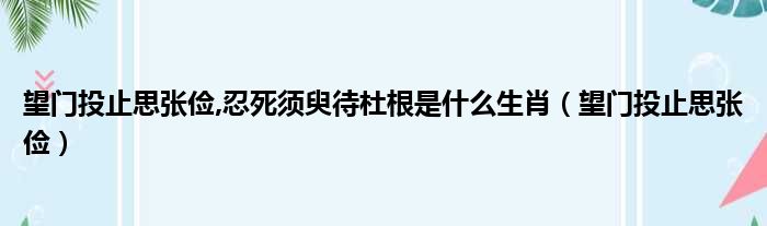 望门投止思张俭,忍死须臾待杜根是什么生肖(望门投止思张俭)