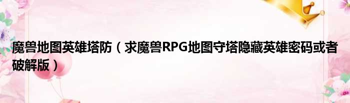 魔兽地图英雄塔防(求魔兽RPG地图守塔隐藏英雄密码或者破解版)