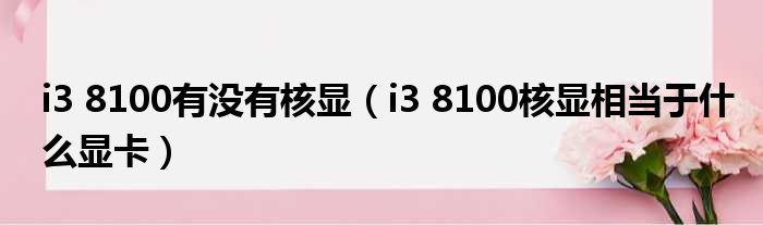 i3 8100有没有核显(i3 8100核显相当于什么显卡)