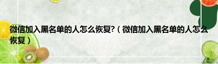 微信加入黑名单的人怎么恢复?(微信加入黑名单的人怎么恢复)