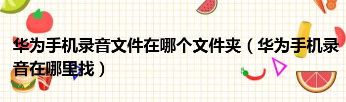大家好,小活来为大家解答以上的问题。华为手机录音文件在哪个文件夹,华为手机录音在哪里找这个很多人还不知道,现在让我们一起来看看吧!