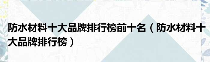 防水材料十大品牌排行榜前十名(防水材料十大品牌排行榜)
