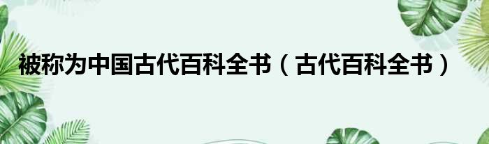 被称为中国古代百科全书(古代百科全书)