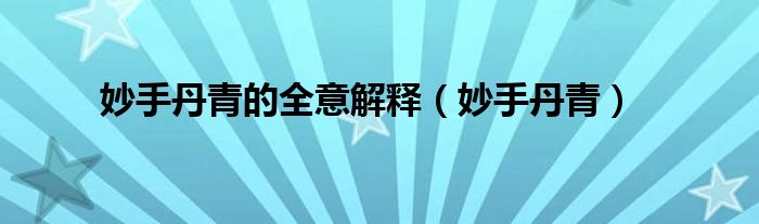 大家好,小活来为大家解答以上的问题。妙手丹青的全意解释,妙手丹青这个很多人还不知道,现在让我们一起来看看吧!