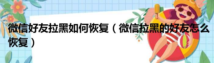 微信好友拉黑如何恢复(微信拉黑的好友怎么恢复)