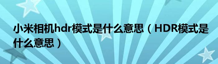 小米相机hdr模式是什么意思(HDR模式是什么意思)