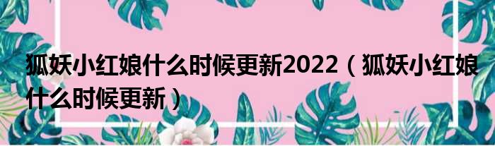 导读 大家好,小活来为大家解答以上的问题。狐妖小红娘什么时候更新2022,狐妖小红娘什么时候更新这个很多人还不知道,现在让我们一起来看看吧!1