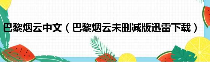巴黎烟云中文(巴黎烟云未删减版迅雷下载)
