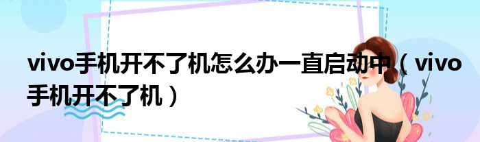 vivo手机开不了机怎么办一直启动中(vivo手机开不了机)