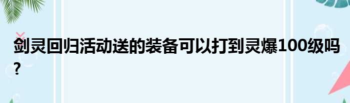 剑灵回归活动送的装备可以打到灵爆100级吗?