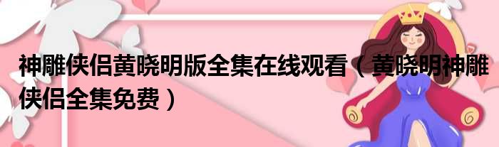 导读 大家好,小活来为大家解答以上的问题。神雕侠侣黄晓明版全集在线观看,黄晓明神雕侠侣全集免费这个很多人还不知道,现在让我们一起来看看吧!