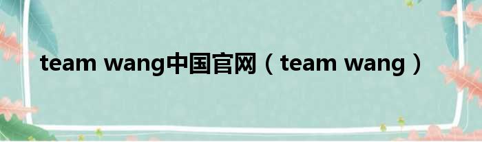 team wang中国官网(team wang)