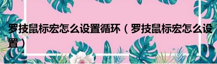 罗技鼠标宏怎么设置循环(罗技鼠标宏怎么设置)