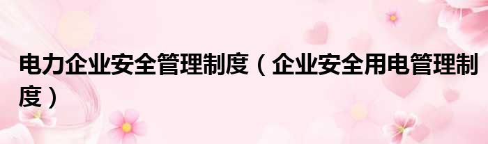 电力企业安全管理制度(企业安全用电管理制度)