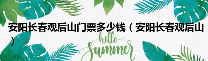 安阳长春观后山门票多少钱(安阳长春观后山)