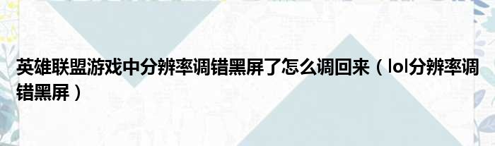 导读 大家好,小活来为大家解答以上的问题。英雄联盟游戏中分辨率调错黑屏了怎么调回来,lol分辨率调错黑屏这个很多人还不知道,现在让我们一起来