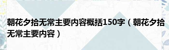 朝花夕拾无常主要内容概括150字(朝花夕拾无常主要内容)