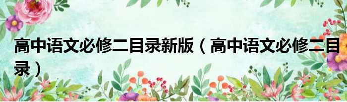 导读 大家好,小活来为大家解答以上的问题。高中语文必修二目录新版,高中语文必修二目录这个很多人还不知道,现在让我们一起来看看吧!1、必修一1