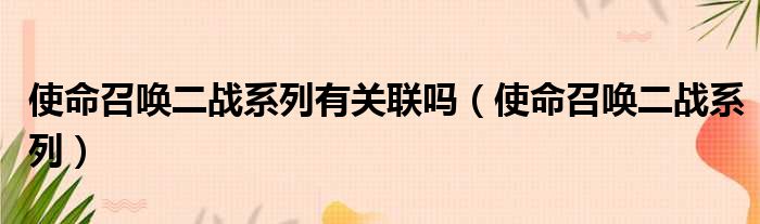 使命召唤二战系列有关联吗(使命召唤二战系列)