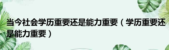 当今社会学历重要还是能力重要(学历重要还是能力重要)