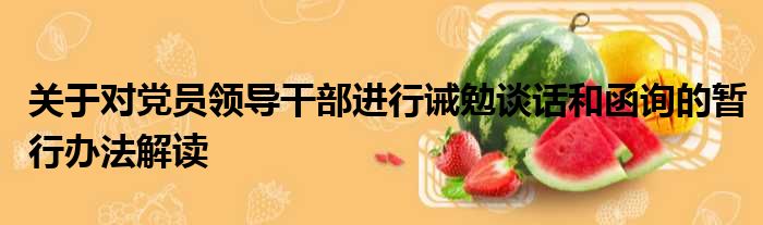 关于对党员领导干部进行诫勉谈话和函询的暂行办法解读
