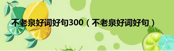 大家好,小活来为大家解答以上的问题。不老泉好词好句300,不老泉好词好句这个很多人还不知道,现在让我们一起来看看吧!