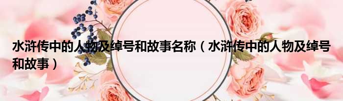水浒传中的人物及绰号和故事名称(水浒传中的人物及绰号和故事)