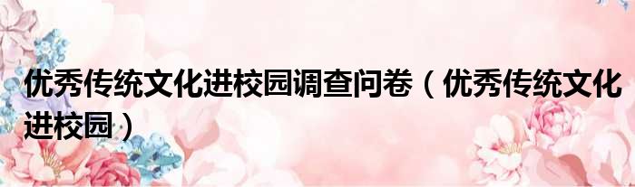 优秀传统文化进校园调查问卷(优秀传统文化进校园)