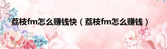 荔枝fm怎么赚钱快(荔枝fm怎么赚钱)