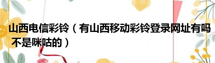 导读 大家好,小活来为大家解答以上的问题。山西电信彩铃,有山西移动彩铃登录网址有吗 不是咪咕的这个很多人还不知道,现在让我们一起来看看吧!