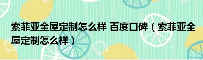 索菲亚全屋定制怎么样 百度口碑(索菲亚全屋定制怎么样)